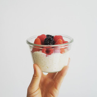 #5 Den Milchreis in Gläsern anrichten und übrig gebliebenen Reis weg essen.